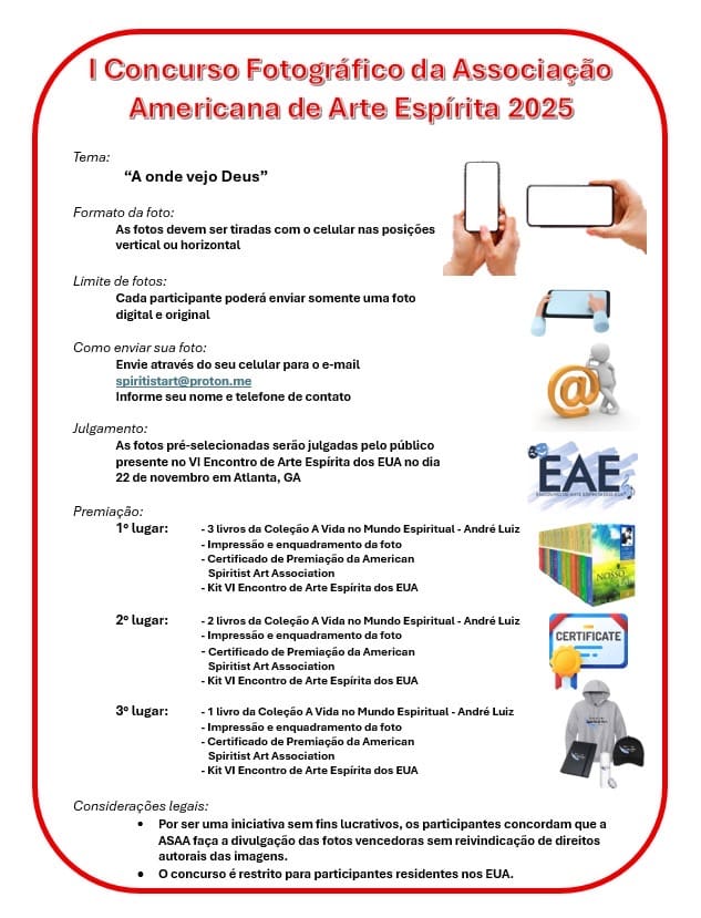 Concurso Fotográfico Primeiro Concurso Fotográfico da Associação Americana de Arte Espírita 2025 Terma: A onde vejo Deus